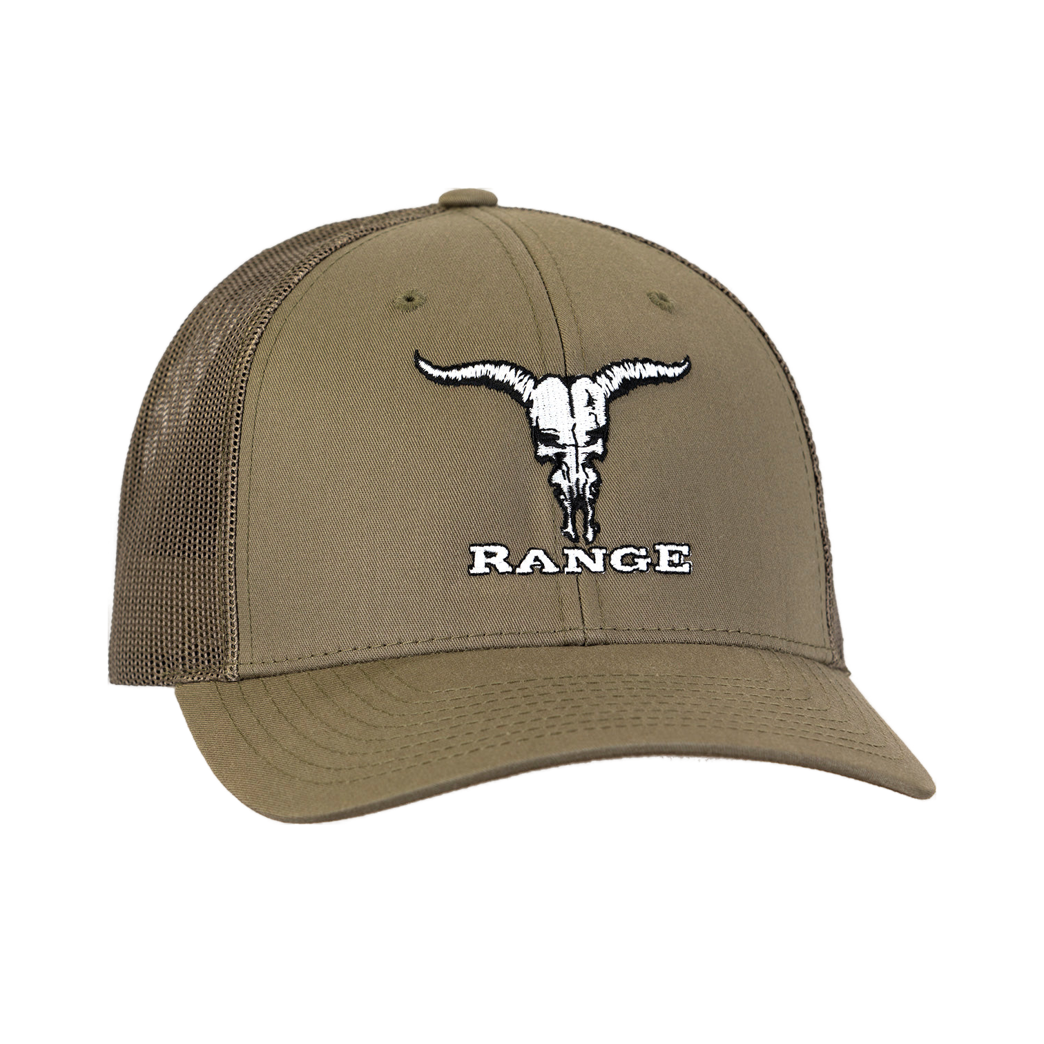 R Range Ball Cap Brand Richardson 115 Low Profile Trucker Sage Green Embroidered Skull Logo