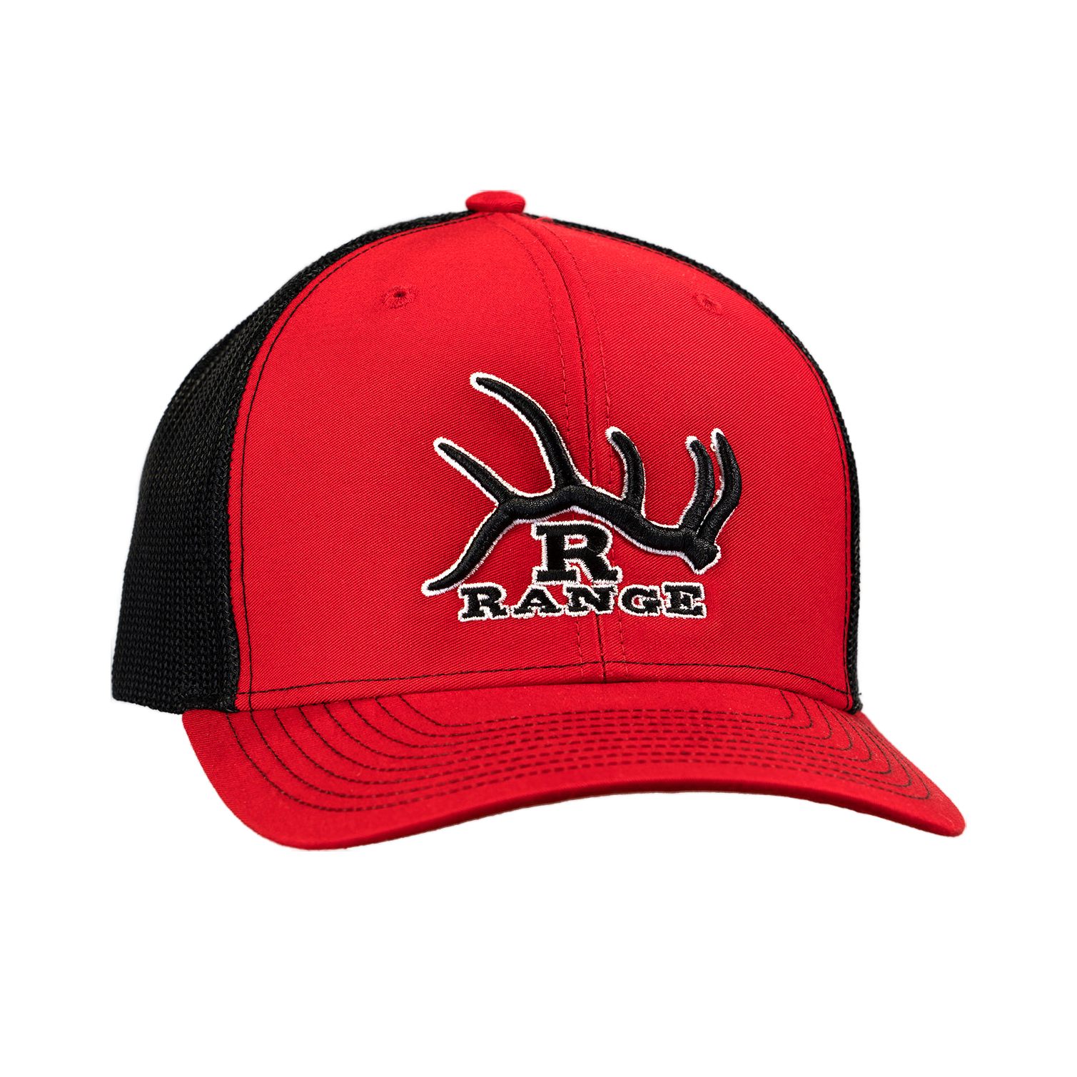 R Range Ball Cap Brand Richardson 112 Trucker Red/Black Embroidered Antler Logo